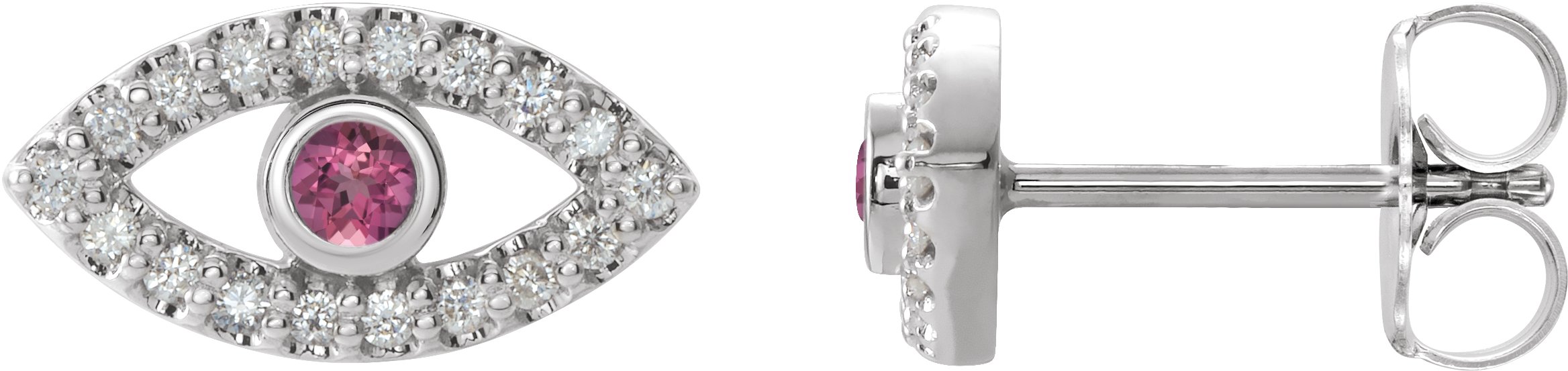 Description: Genuine Pink Tourmaline And White Sapphire Earrings