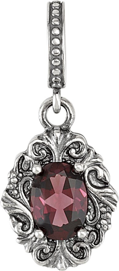 Sterling Silver Rhodolite Garnet Solitaire Victorian Pendant Ref. 3365396