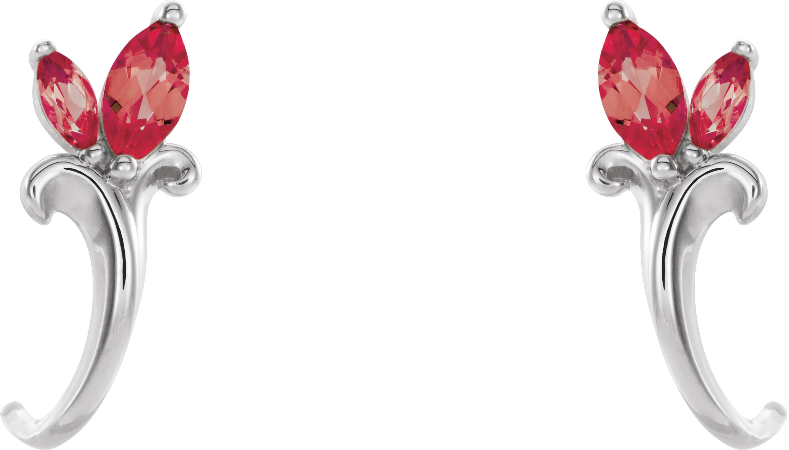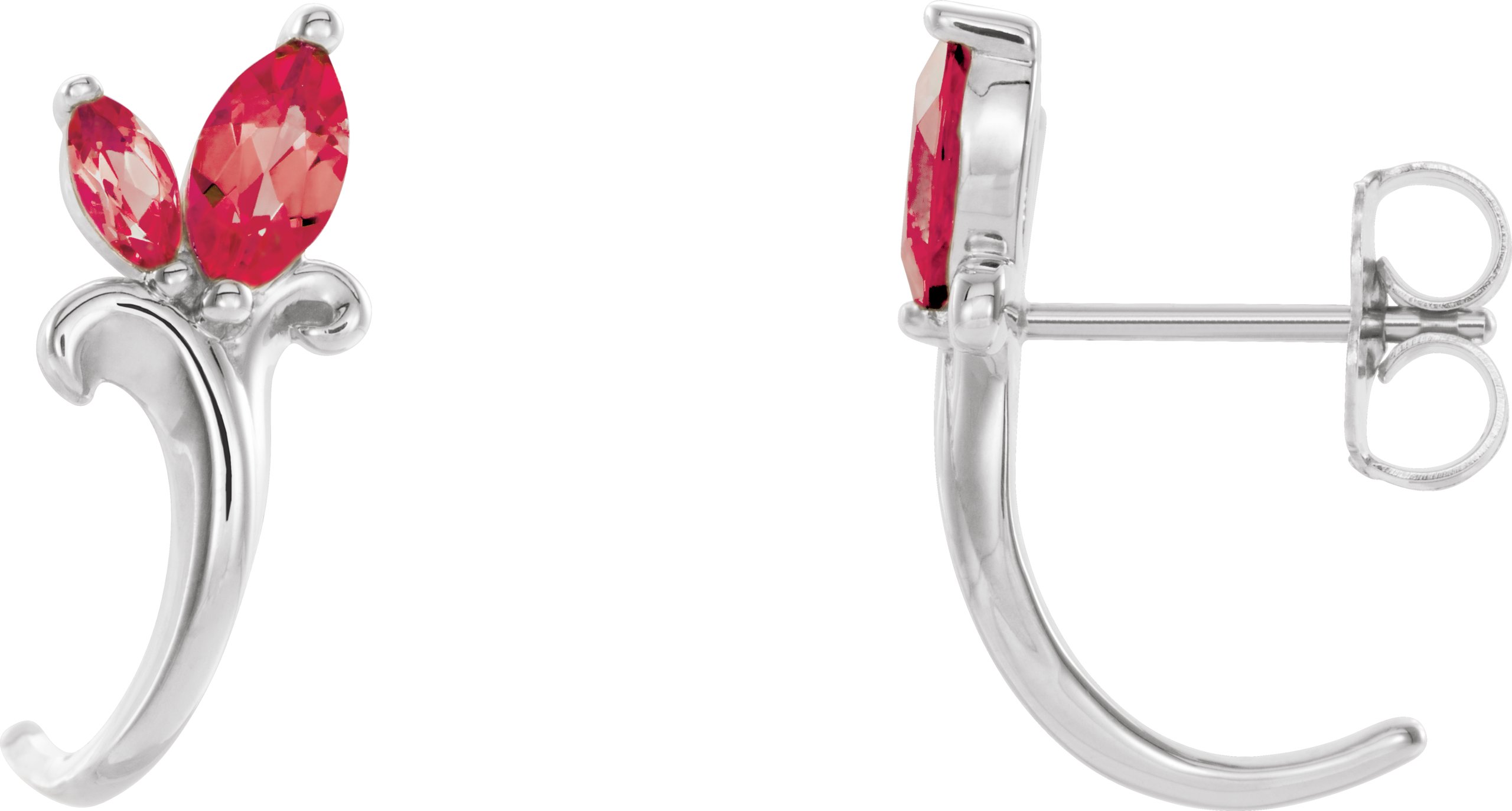 Sterling Silver Ruby Floral Inspired J Hoop Earrings