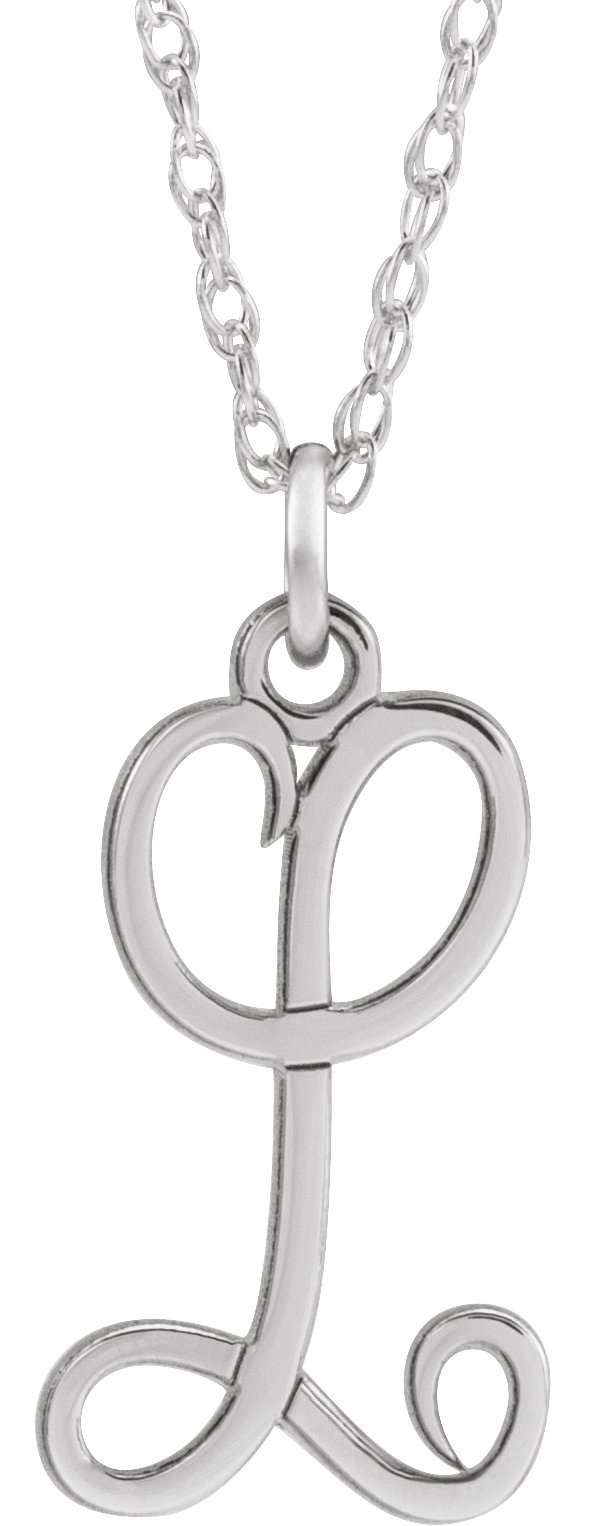 Sterling Silver Script Initial L 16 18" Necklace Ref. 16047135