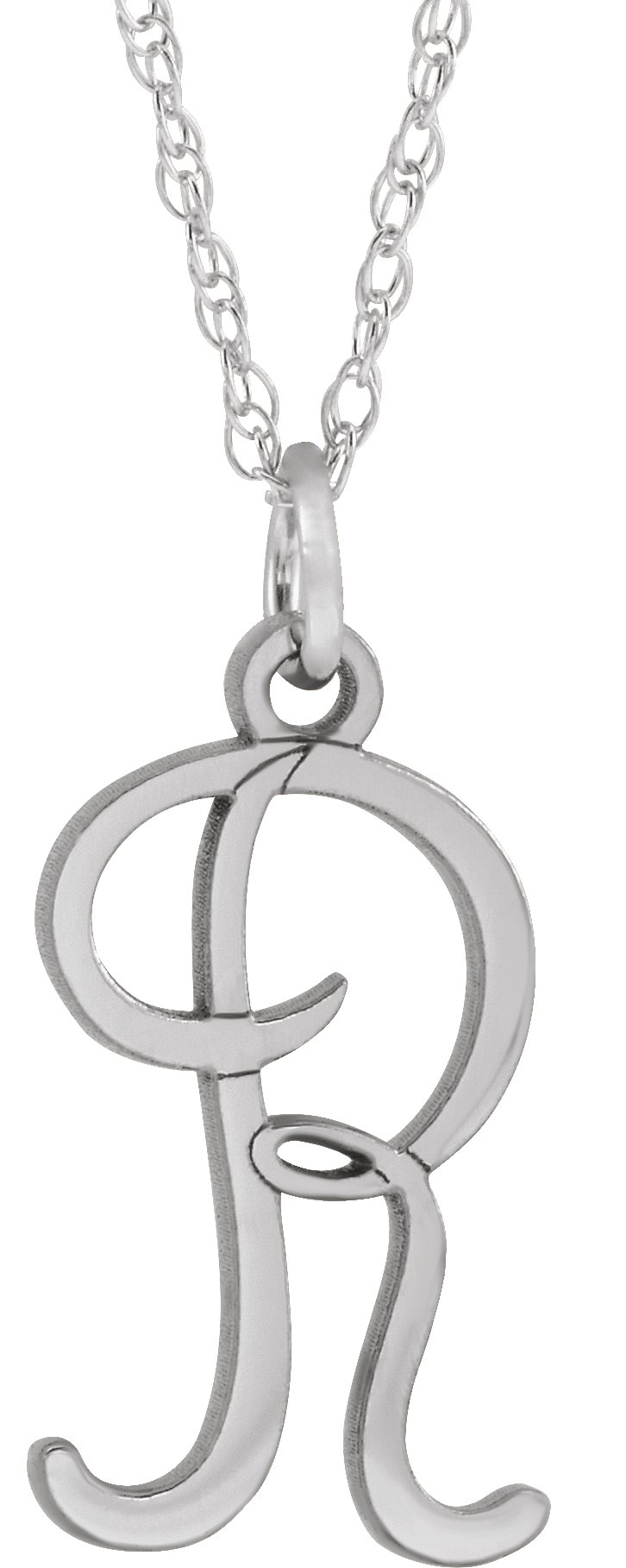 Sterling Silver Script Initial R 16 18" Necklace Ref. 16047141