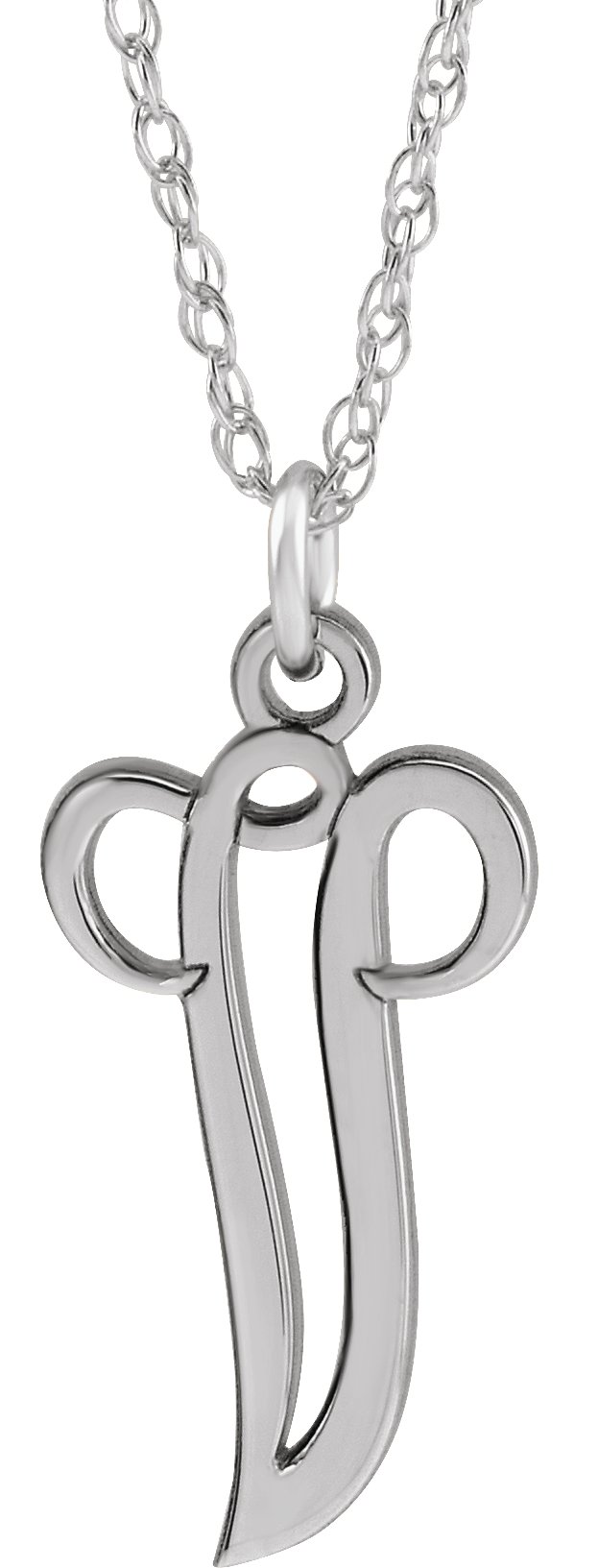 Sterling Silver Script Initial V 16 18" Necklace Ref. 16047145