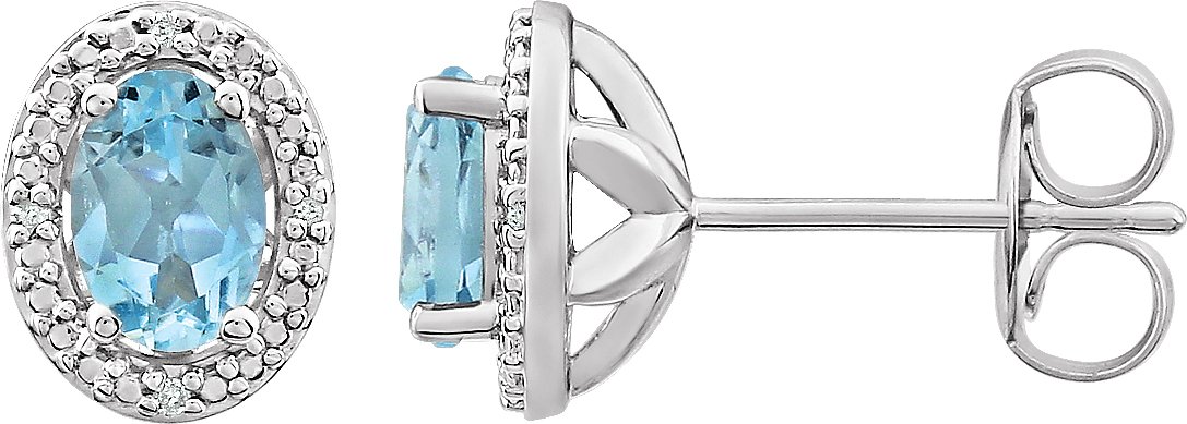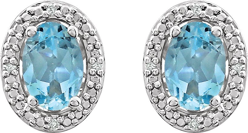 Description: Genuine Sky Blue Topaz And .025 Ctw Diamond Earrings With Backs