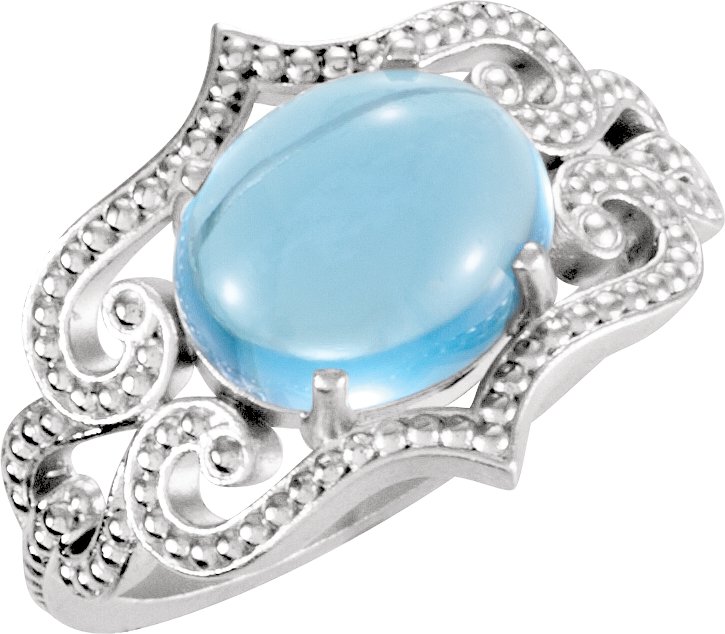 Sterling Silver Swiss Blue Topaz Granulated Design Ring