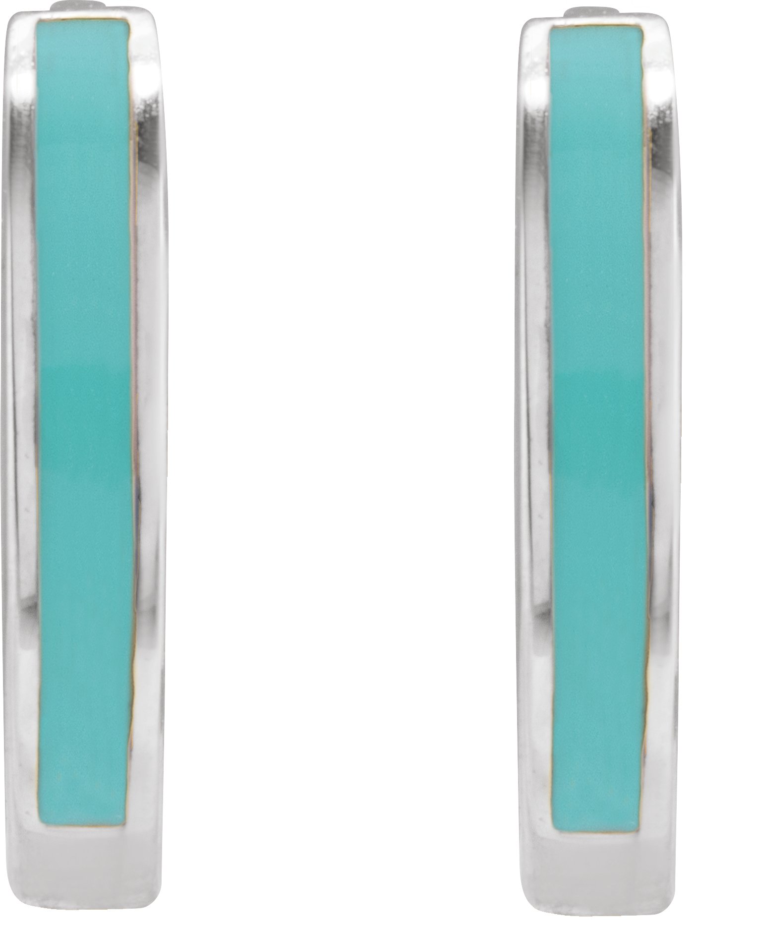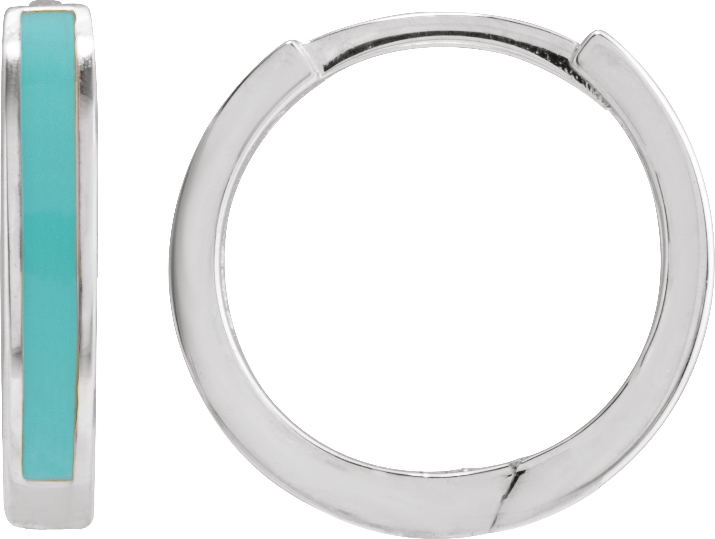 Sterling Silver Turquoise Enamel Hinged 12.1 mm Hoop Earrings
