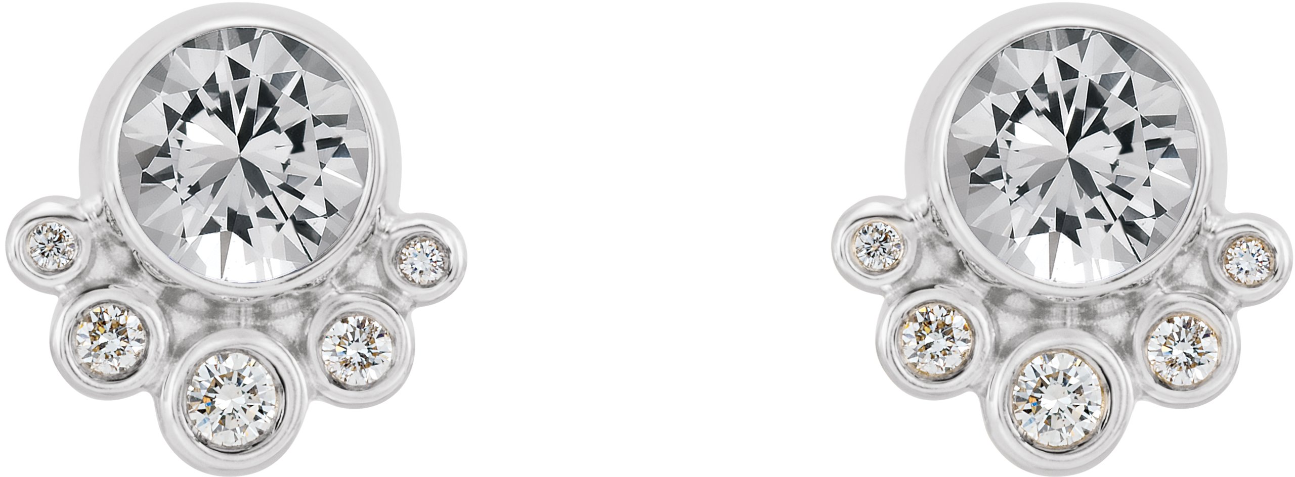 Description: Genuine White Sapphire And 1/8 Ctw Diamond Earrings