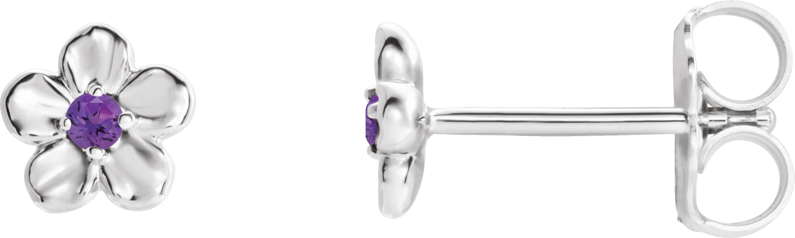 Sterling Silver Youth Imitation February Birthstone Flower Earrings