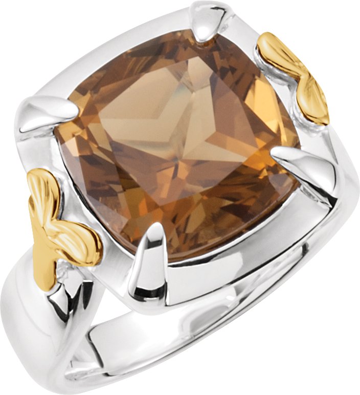 Sterling Silver and 14K Yellow Honey Quartz Ring