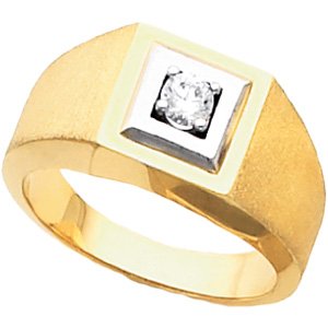 Two Tone Gents Diamond Ring | 1/4 Carat. Ref 9731. Set with 1ea 04.10 MM (03.90 - 04.20) Full Cut, I1 ROUND FULL CUT G-H GENUINE DIAMOND.