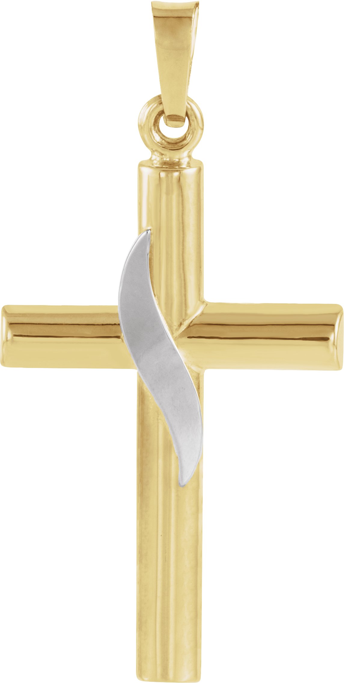 Two Tone Hollow Cross Pendant | 25 x 16 mm. 14K Yellow & White Gold.