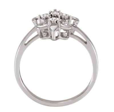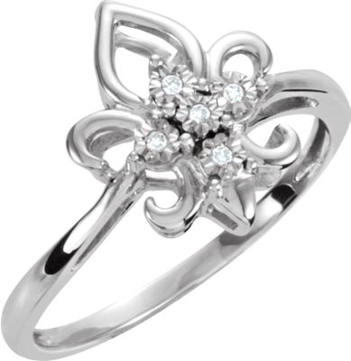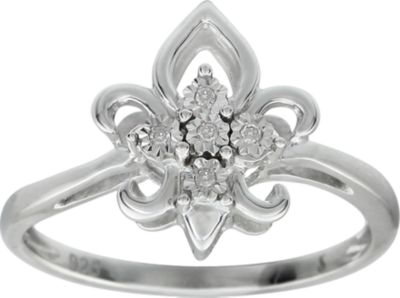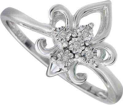 .03 Carat TW Fleur de Lis Diamond Ring. Sterling Silver.