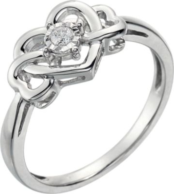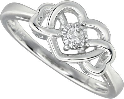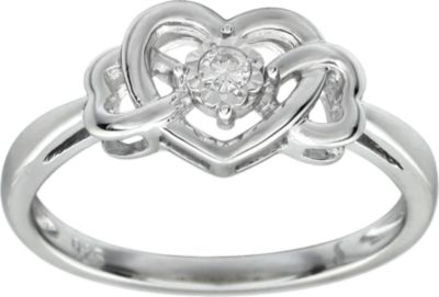 .05 Carat TW Diamond Heart Ring. Sterling Silver.