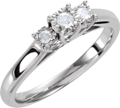 1/8 Carat TW Diamond 3 Stone Ring. Sterling Silver.