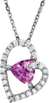1/5 Carat TW Pink Sapphire & Diamond Pendant. 14K White Gold.
