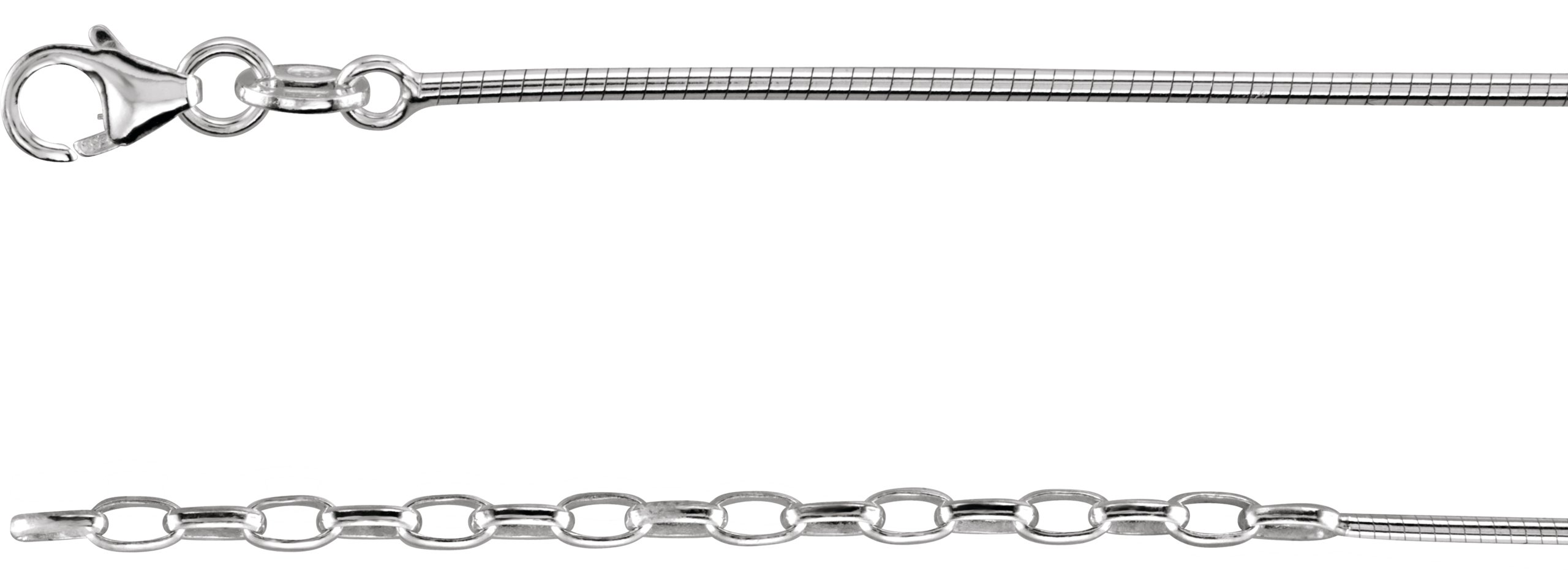 1.5 mm Sterling Silver Round Omega Chain with 2 Inch Extension & Lobster Clasp. 16.5 inch.