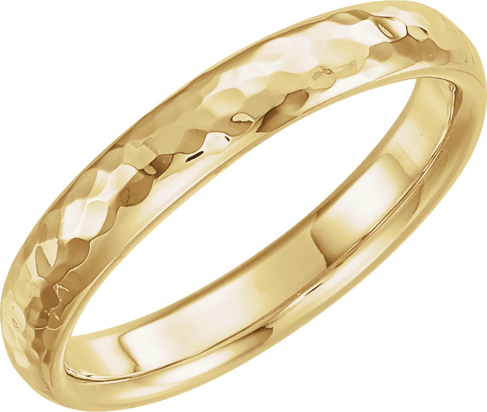 10K Yellow 4 mm Half Round Band with Hammer Finish Size 7