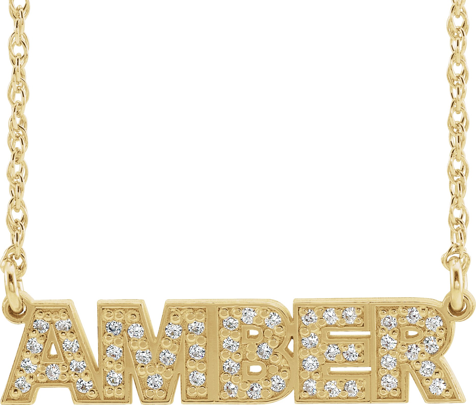 10K Yellow Diamond Accented Nameplate 18 inch Necklace. Monogram font.