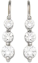 14K 3-Stone CZ Bishop Hook Earrings. 14K White Gold. Ref 22251.