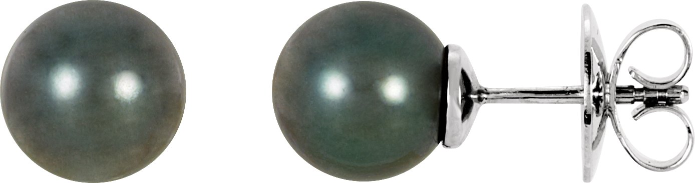 14K Palladium White 8 mm Round Tahitian Cultured Pearl Earrings