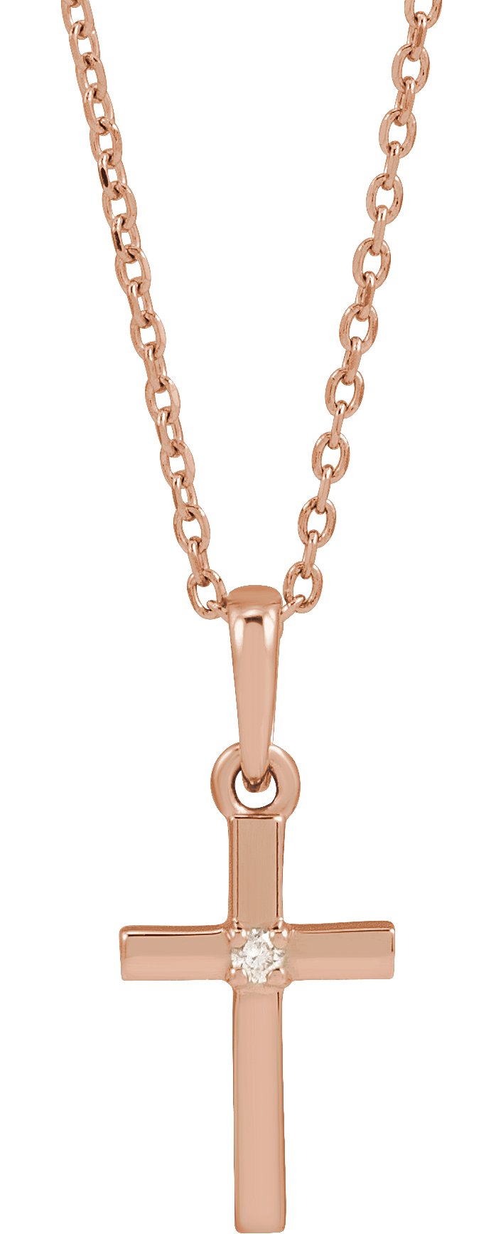14K Rose .015 CT Natural Diamond Cross 16-18" Necklace