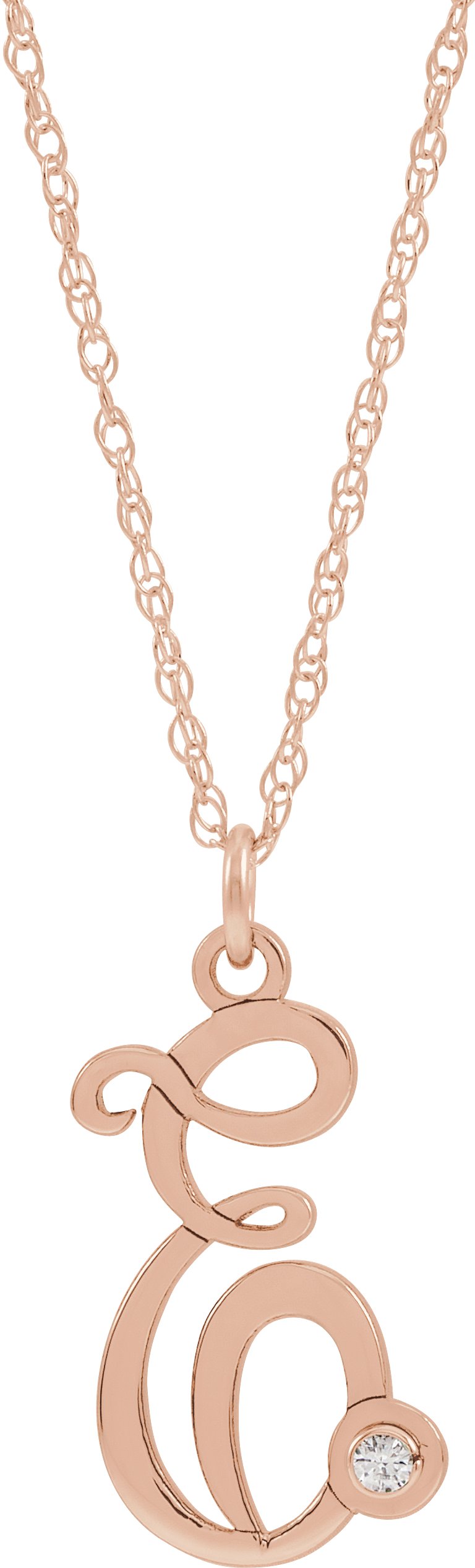 14K Rose .02 CT Diamond Script Initial E 16 18" Necklace Ref. 16047570
