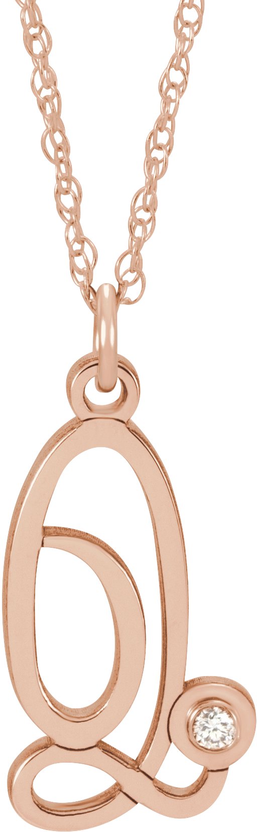 14K Rose .02 CT Diamond Script Initial Q 16 18" Necklace Ref. 16047582