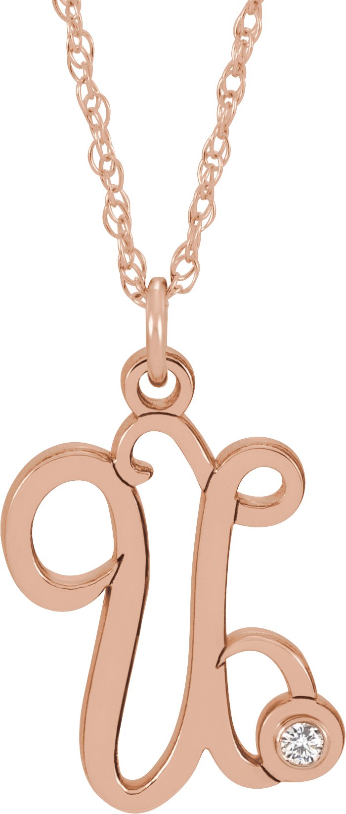 14K Rose .02 CT Diamond Script Initial U 16 18" Necklace Ref. 16047586