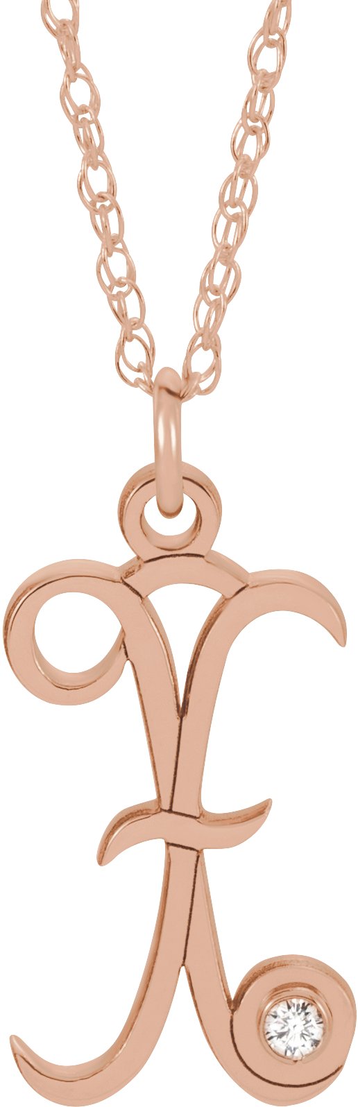 14K Rose .02 CT Diamond Script Initial X 16 18" Necklace Ref. 16047589
