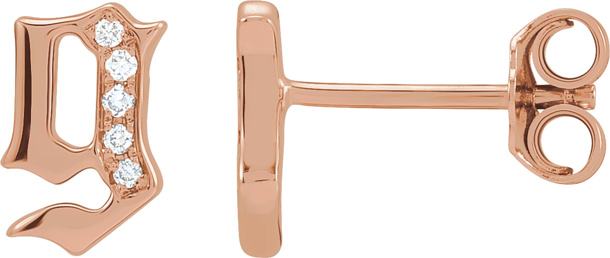 14K Rose .02 CTW Diamond Single Gothic Initial G Earring Ref 18433454