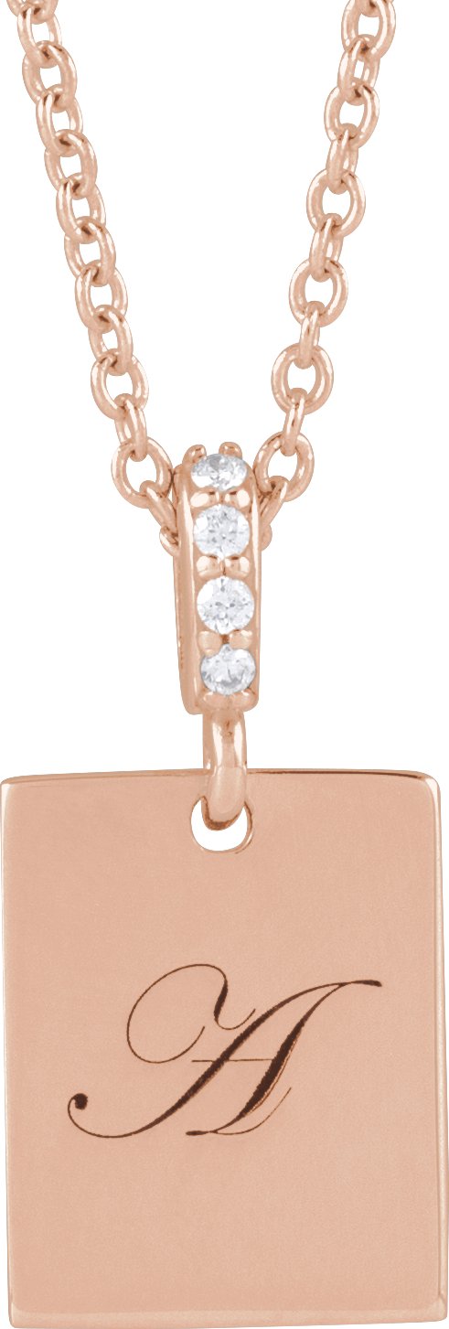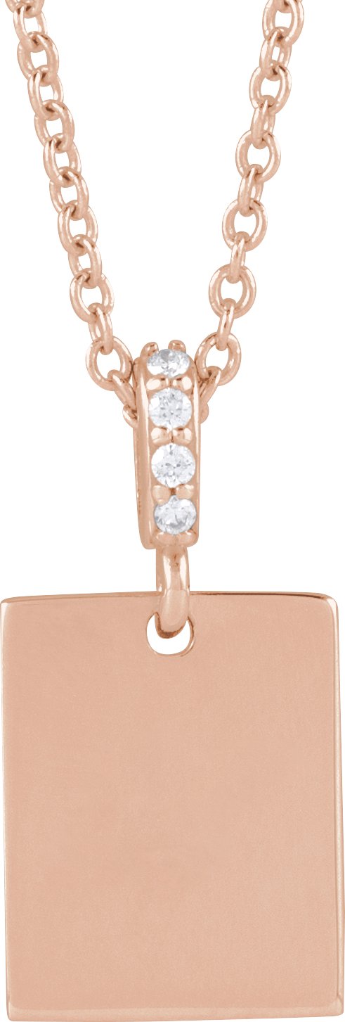 14K Rose .02 CTW Natural Diamond Engravable 16-18" Necklace