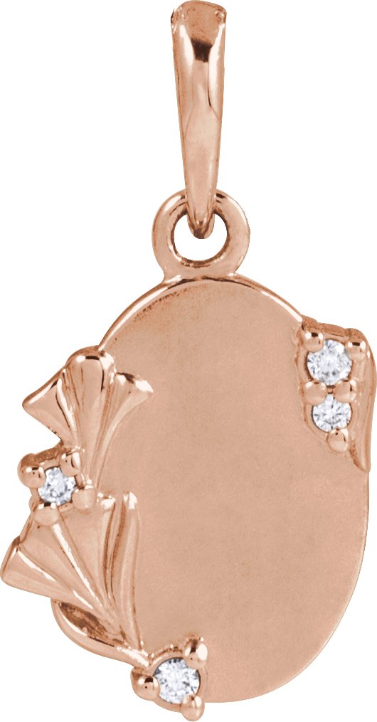 14K Rose .025 CTW Natural Diamond Engravable Floral Pendant