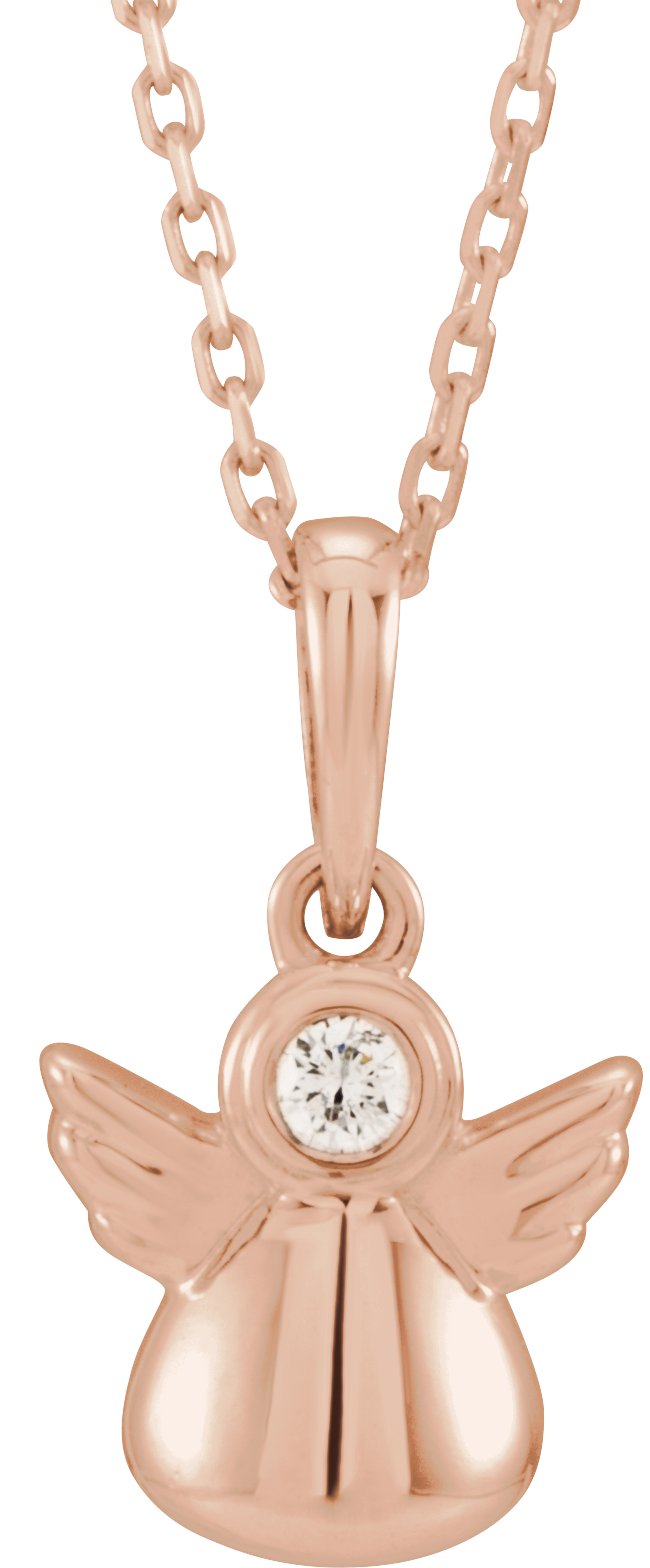 14K Rose .03 CT Diamond Youth Angel 15" Necklace Ref. 13468199