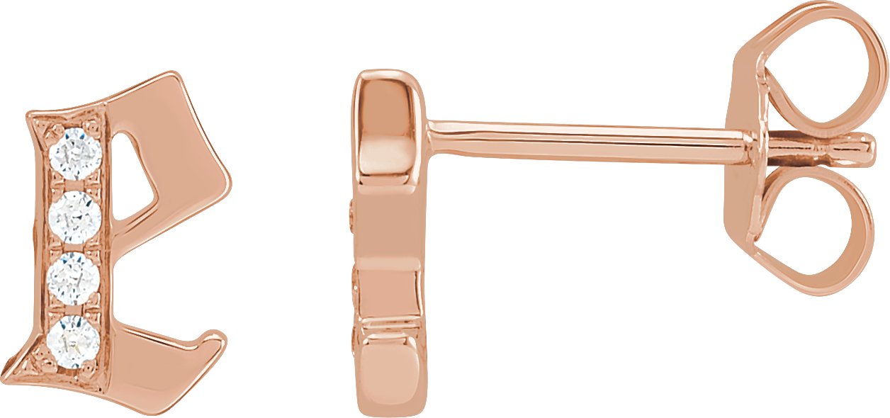 14K Rose .03 CTW Diamond Single Gothic Initial E Earring Ref 18433448