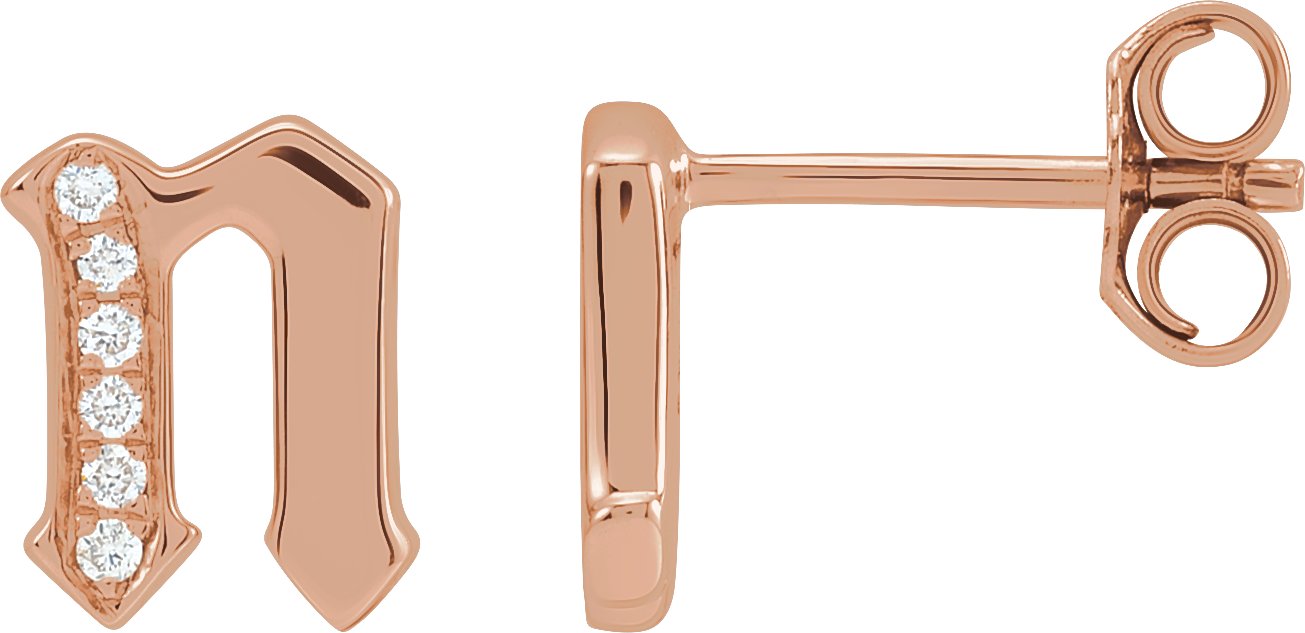 14K Rose .03 CTW Diamond Single Gothic Initial N Earring Ref 18433475