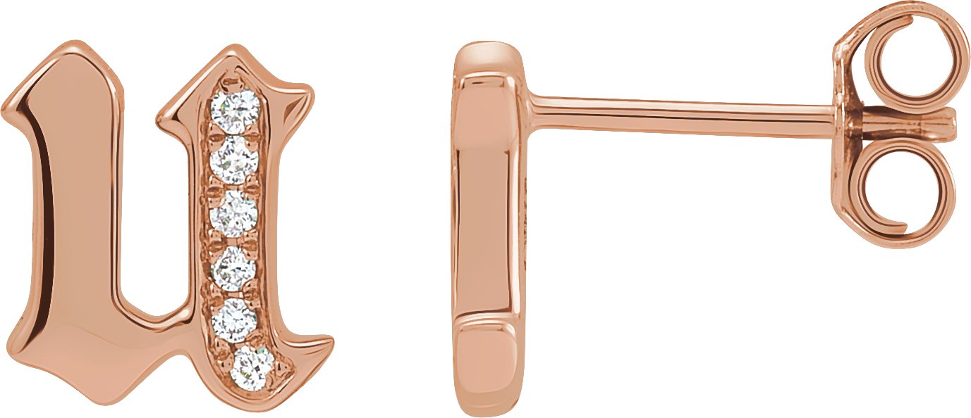 14K Rose .03 CTW Diamond Single Gothic Initial U Earring Ref 18433496