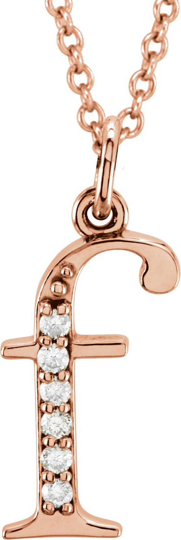 14K Rose .03 CTW Natural Diamond Lowercase Initial F 16" Necklace