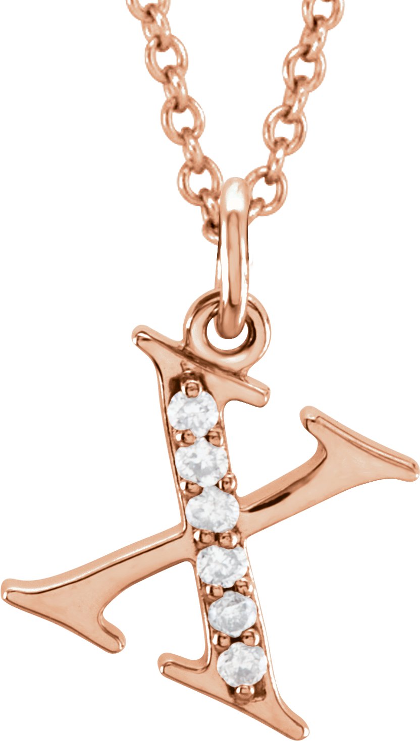 14K Rose .03 CTW Natural Diamond Lowercase Initial X 16" Necklace