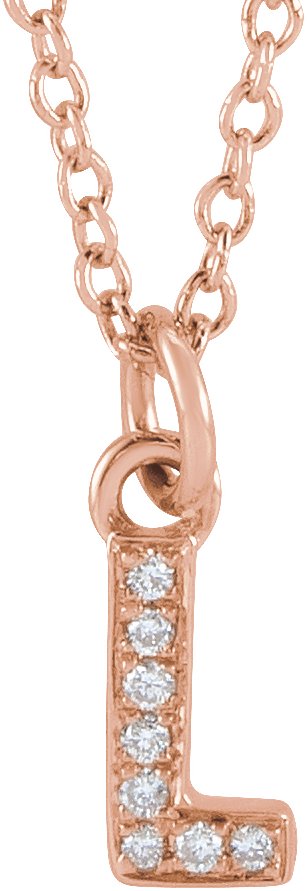 14K Rose .03 CTW Natural Diamond Petite Initial L 16 to 18 inch Necklace Ref 18053958
