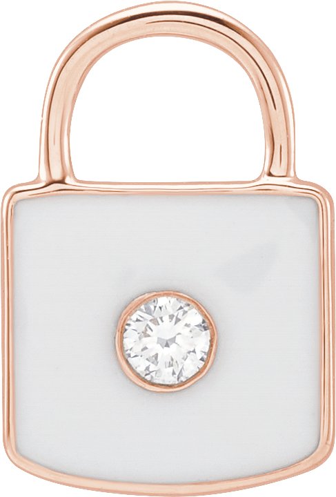 14K Rose .035 CT Natural Diamond and White Enamel Lock Charm or Pendant Ref 18628493