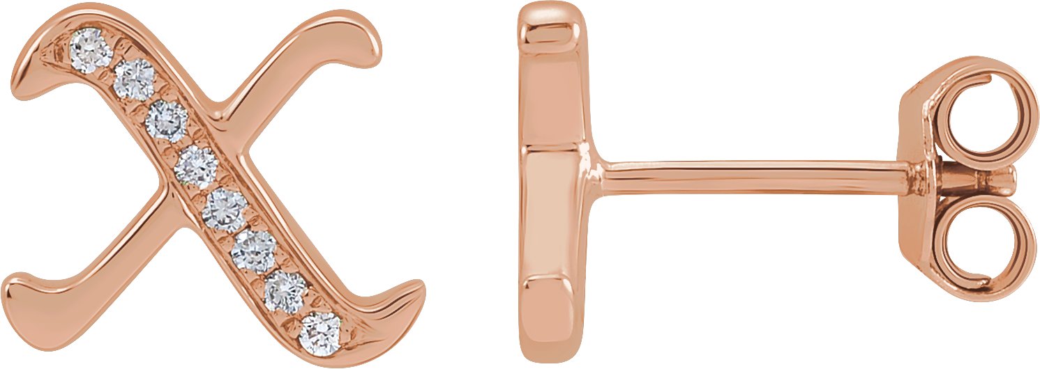 14K Rose .04 CTW Diamond Single Gothic Initial X Earring Ref 18433505