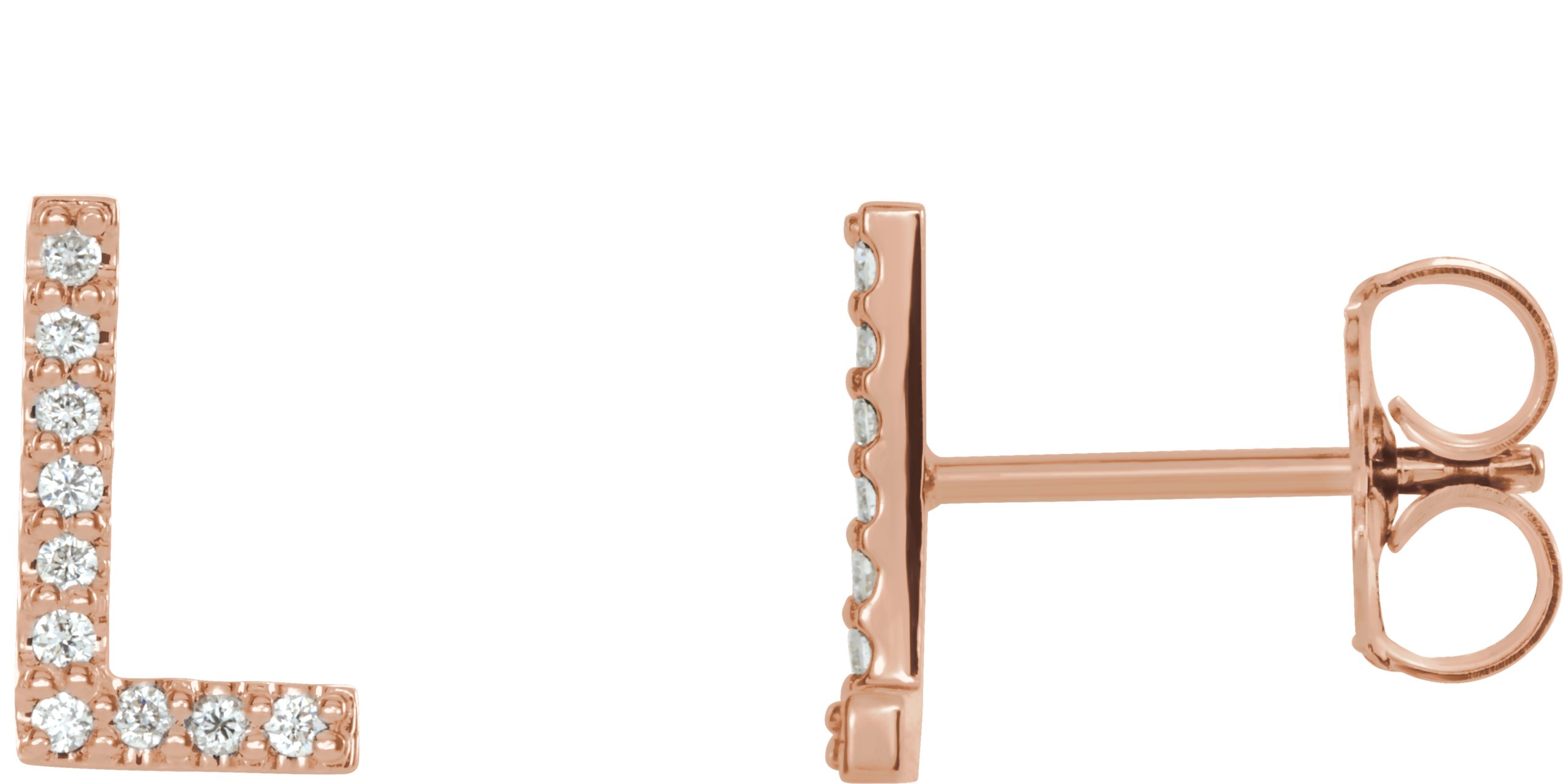 14K Rose .04 CTW Diamond Single Initial L Earring