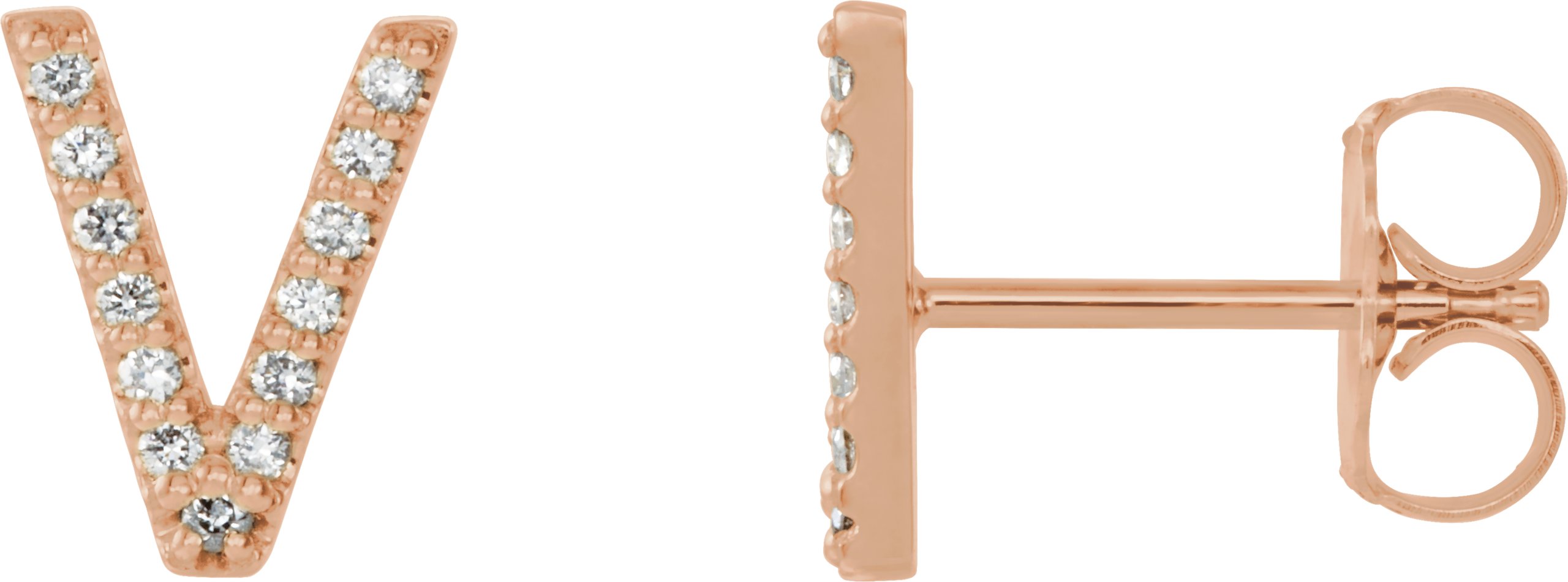 14K Rose .04 CTW Diamond Single Initial V Earring