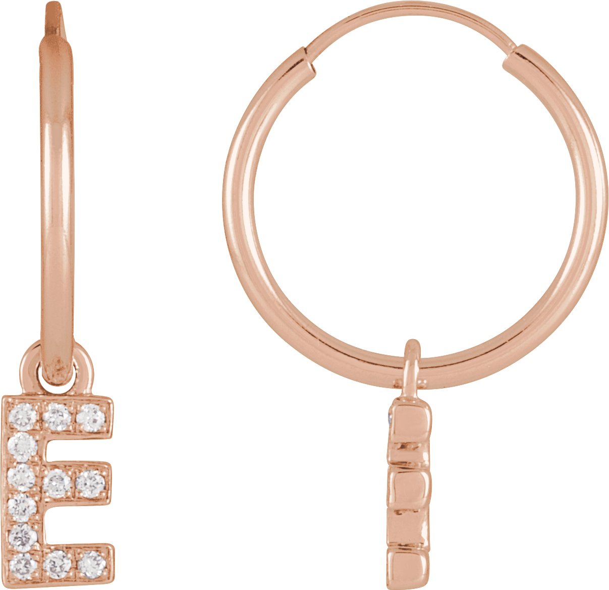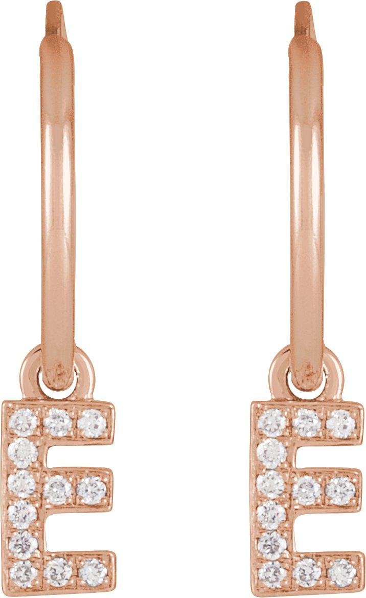 14K Rose .04 CTW Natural Diamond Single Initial E Hoop Earring Ref 18988720