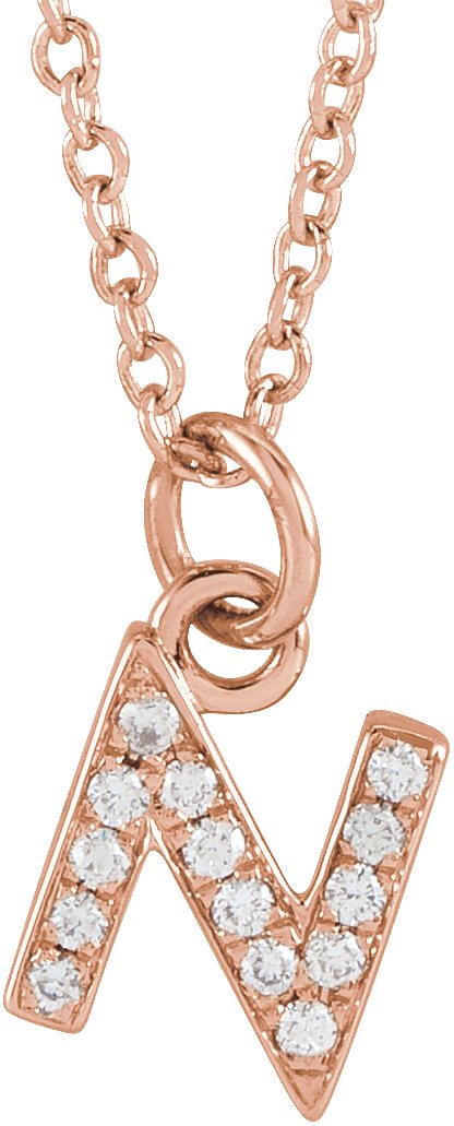 14K Rose .05 CTW Natural Diamond Petite Initial N 16 to 18 inch Necklace Ref 18053964