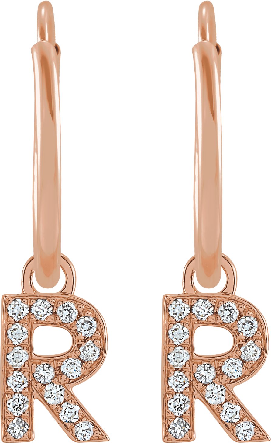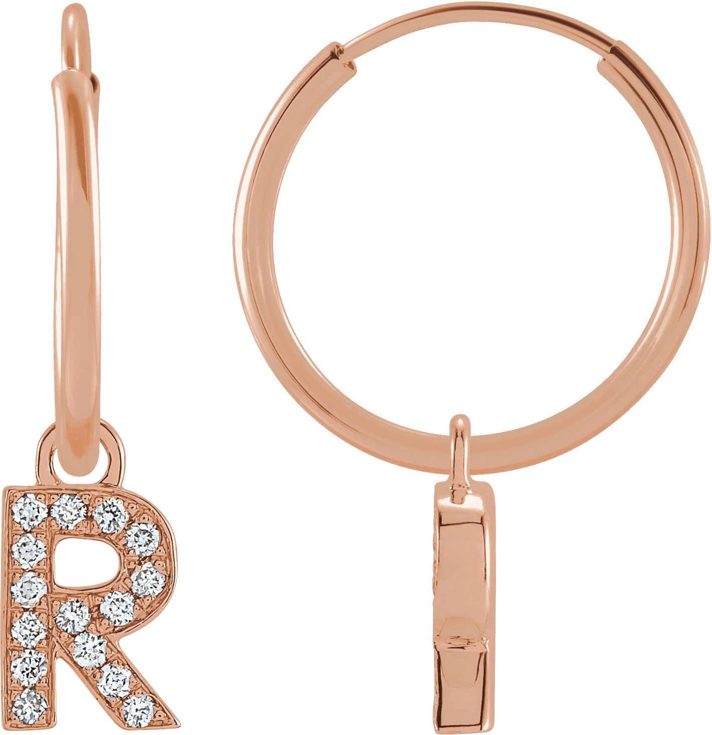 14K Rose .05 CTW Natural Diamond Single Initial R Hoop Earring Ref 18988765