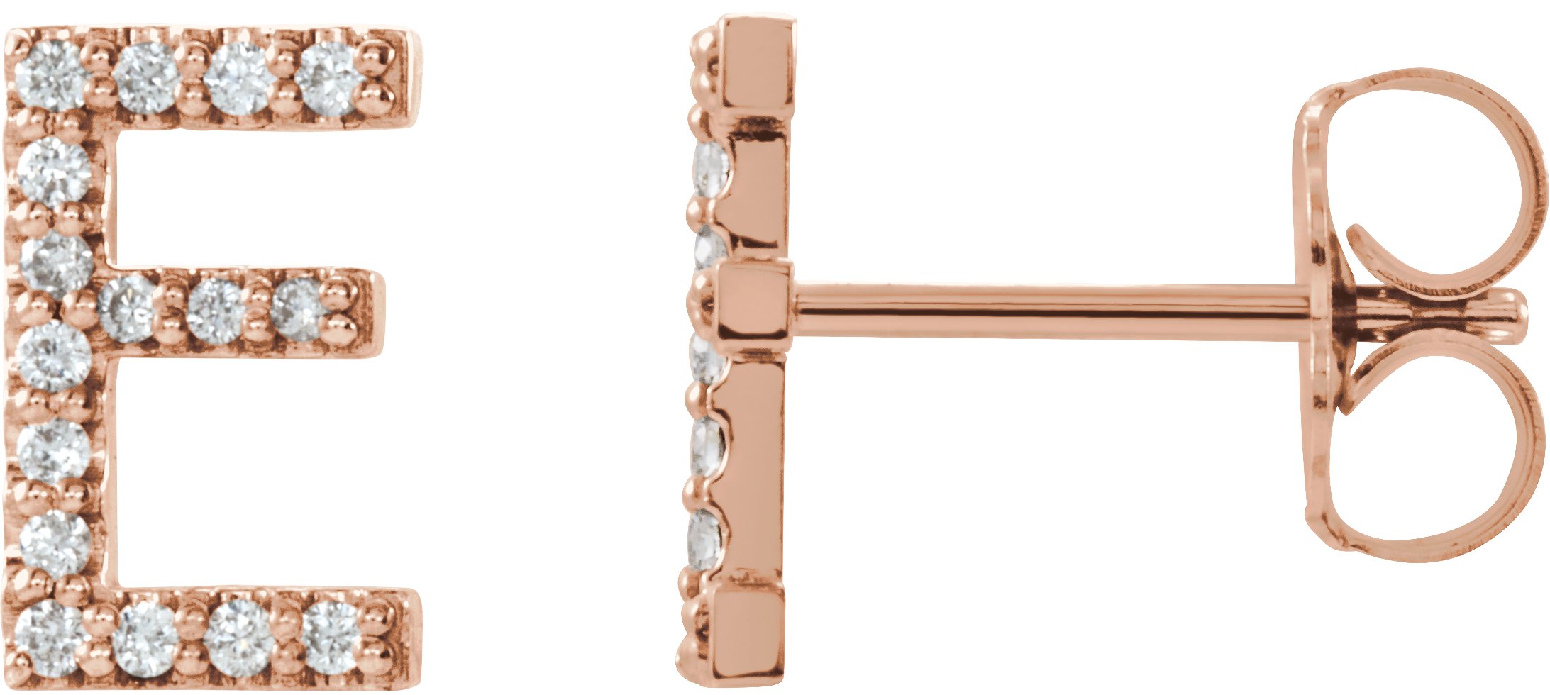 14K Rose .06 CTW Diamond Single Initial E Earring