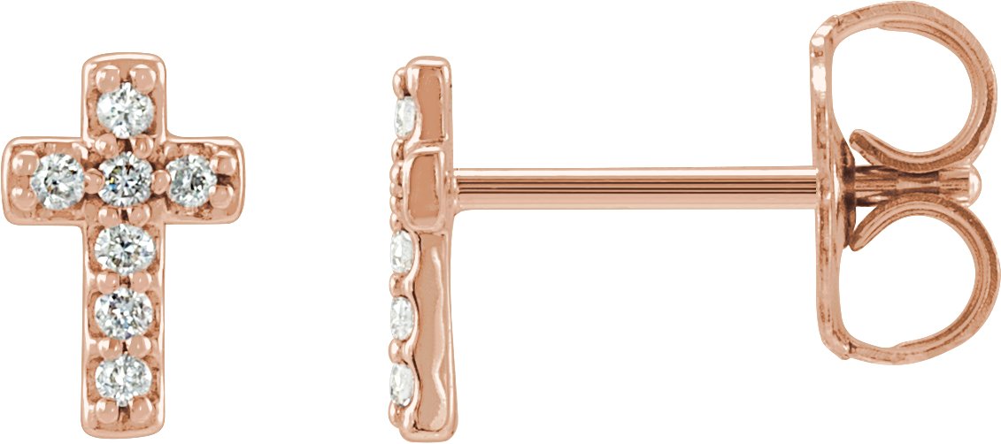 14K Rose .06 CTW Natural Diamond Cross Earrings