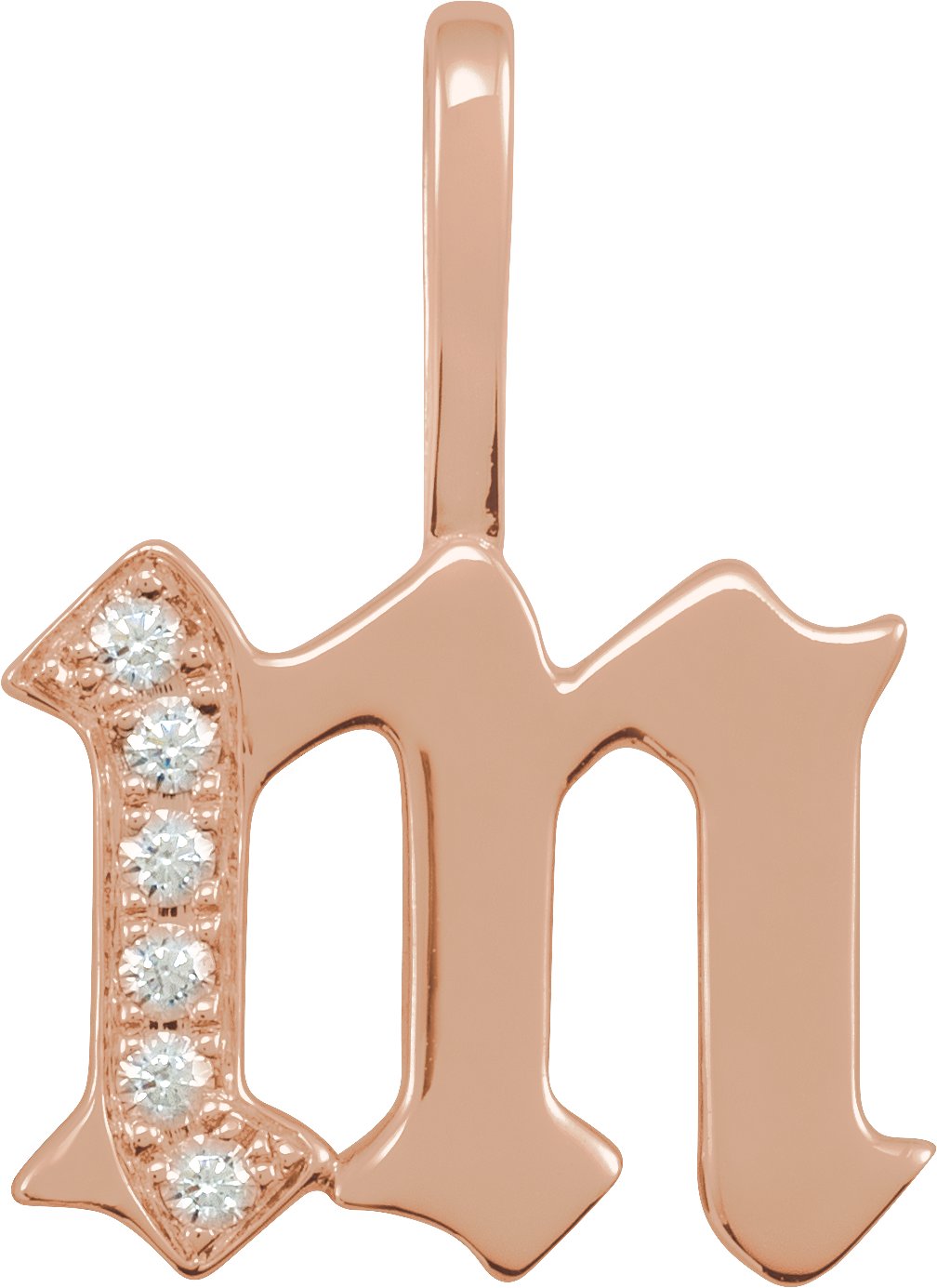 14K Rose .06 CTW Natural Diamond Gothic Initial M Charm or Pendant Ref 18482026