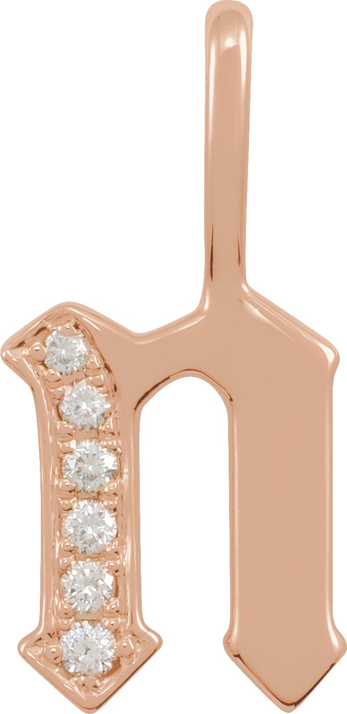 14K Rose .06 CTW Natural Diamond Gothic Initial N Charm or Pendant Ref 18482029