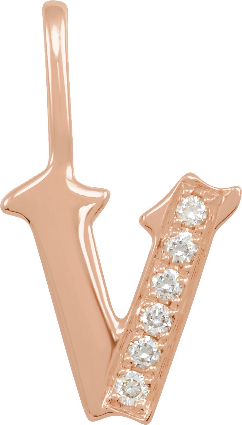 14K Rose .06 CTW Natural Diamond Gothic Initial V Charm or Pendant Ref 18482053